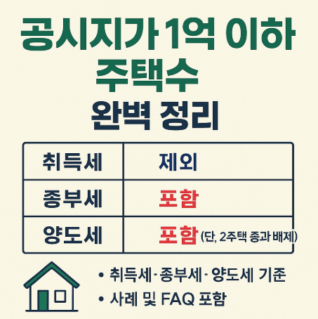 공시지가 1억 이하 주택수는 세금 계산에서 중요한 변수입니다. 취득세, 종합부동산세, 양도소득세마다 포함 여부가 달라 많은 분들이 혼란을 겪습니다. 이 글에서는 2025년 최신 세법 기준으로 한눈에 정리해드리겠습니다.